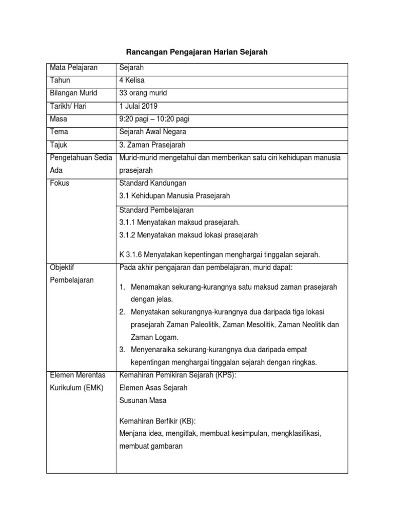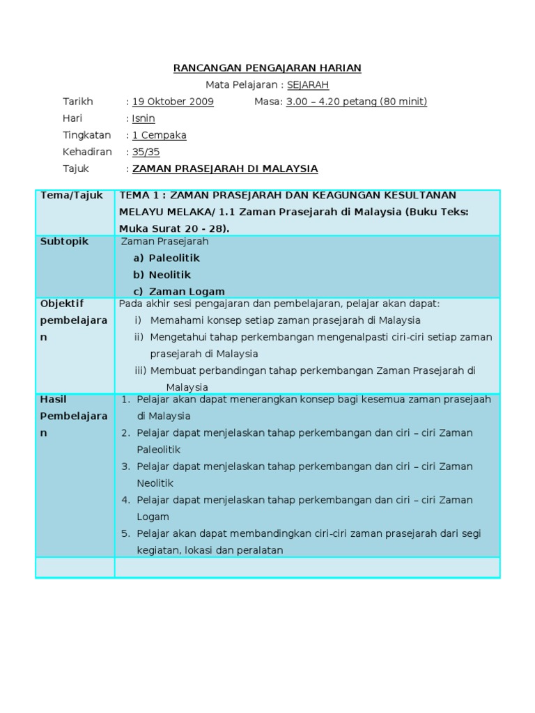 Rancangan Pengajaran Harian Sejarah Tahun 5 Pdf